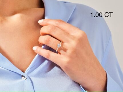 This 2 carat brilliant round moissanite engagement ring features stunning brilliance and a timeless design—perfect for a heartfelt and elegant proposal.