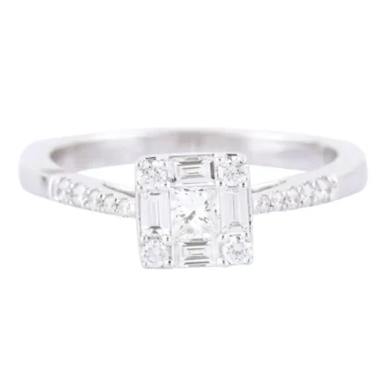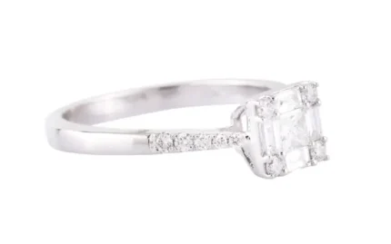 14K white gold illusion-set ring featuring 1.00 carat look with GH COLOR, VS-SI Clarity natural diamonds. BIS Hallmarked & GIA Certified.