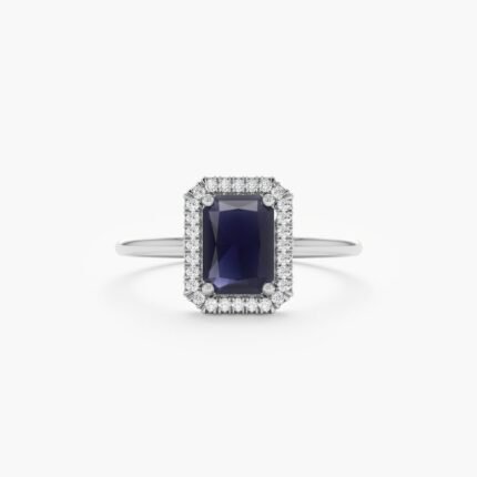 14K Solid Gold Natural Sapphire and Diamond Engagement Ring