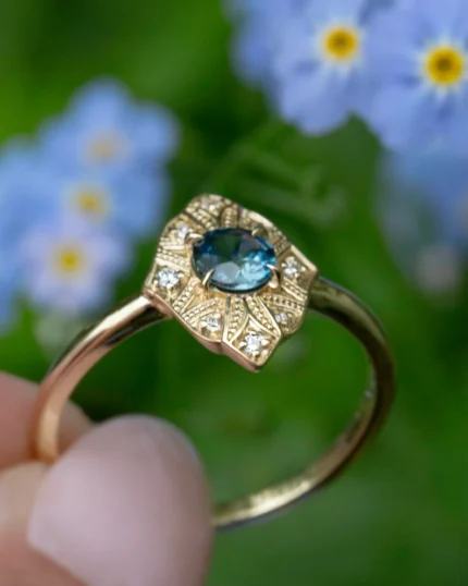 18K Solid Gold Art Deco Montana Sapphire Ring