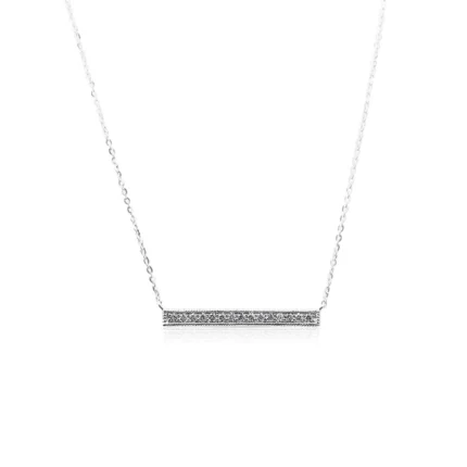 Diamond Bar Charm Necklace: Elevate your look with this handmade necklace featuring a delicate chain adorned with nine diamond-paved bars, creating a cascade of sparkling brilliance with every move.
