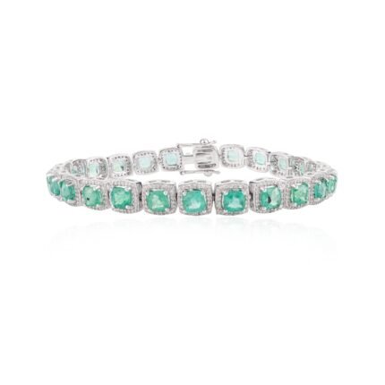 18k Solid Gold Emerald Halo Diamond Tennis Bracelet