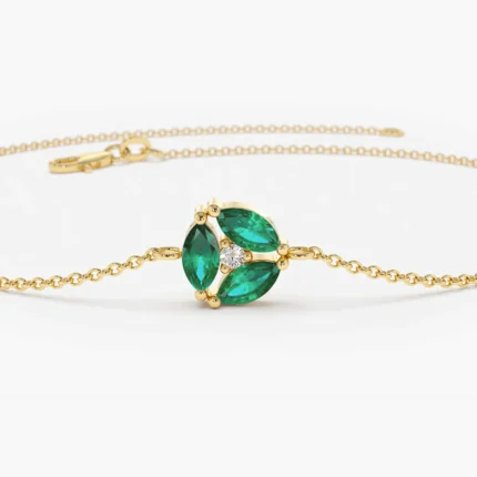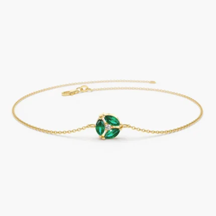 Elegant 14K solid gold bracelet featuring a cluster of marquise-cut emeralds—crafted for vibrant charm and timeless natural sophistication.