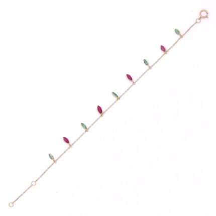 18k Solid Gold Emerald and Ruby Bracelet