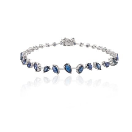 18K Solid Gold Unique Blue Sapphire Tennis Bracelet