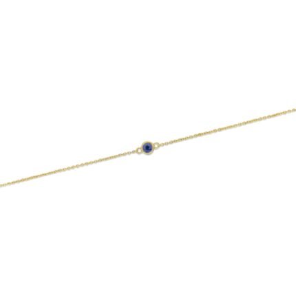 A refined 18K solid gold bracelet featuring a single 0.13 CTW blue sapphire in a sleek bezel setting—effortlessly elegant, day or night.