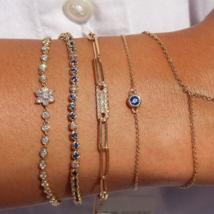 18k Solid Gold Single Sapphire Diamond Eye Bracelet