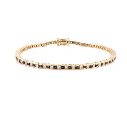 Get this Product in 18K GoldA luxurious 14K solid gold bracelet featuring vibrant blue sapphires and sparkling diamonds, offering a sophisticated and elegant design perfect for any occasion.