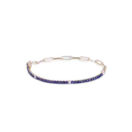 18k Solid Gold Half Sapphire And Diamond Tennis Paperclip Chain Bracelet