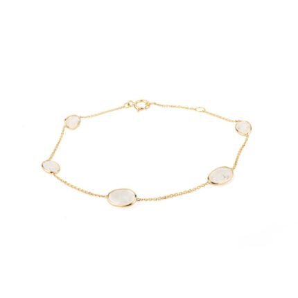 14K Solid Gold Rainbow Moonstone Chain Bracelet