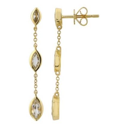 18k Solid Gold White Topaz Triple Marquise Drop Earring
