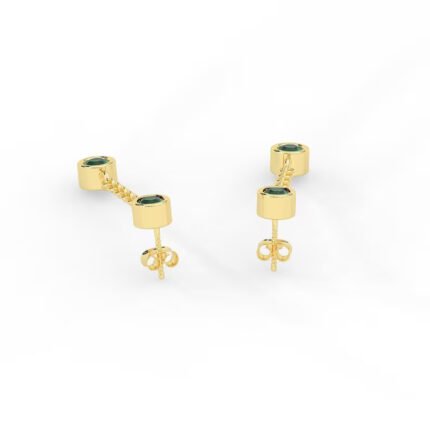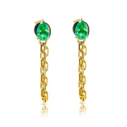 18k Solid Gold Emerald Chain Loop Earring