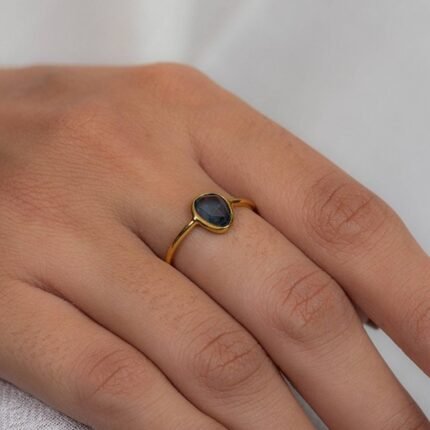 14K Solid Gold Blue Sapphire Ring