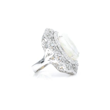 18K Solid Gold Large Oval Opal Set With Double Halo Ring