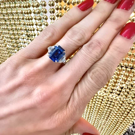 Modern 18k solid gold engagement ring set featuring a hexagon lab-grown diamond and natural sapphire—crafted for bold elegance and brilliance.