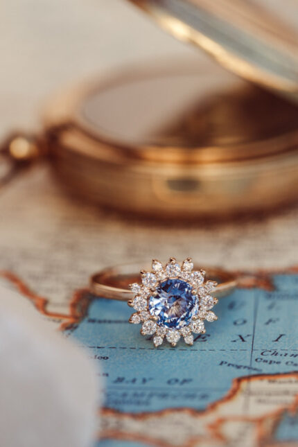 14K Gold White Sapphire Engagement Ring Set | Cluster Sapphire Engagement Ring