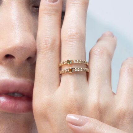 Fresh and modern, this 14K solid gold link chain ring features a vibrant peridot—perfect for stacking or adding a pop of color to any look.