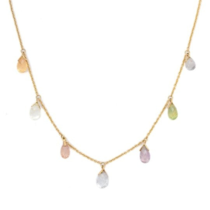 18k Solid Gold Multi-Gemstone Necklace