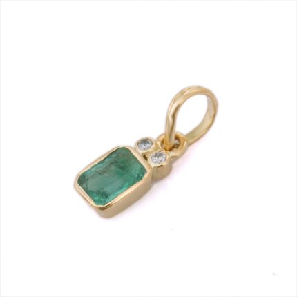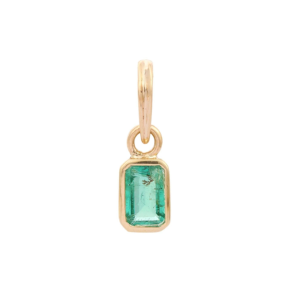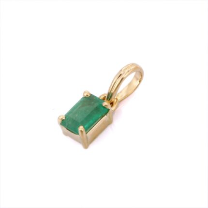 A beautiful 14K solid gold pendant featuring a vibrant emerald, offering an elegant and timeless design perfect for adding a touch of luxury to any outfit.