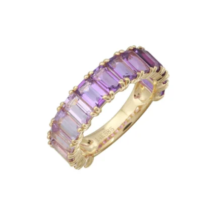 18K Solid Gold Purple Ombre Emerald Cut Amethyst Band