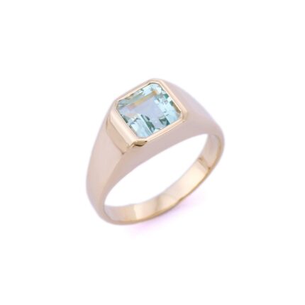 Elegant 14K solid gold ring with a serene aquamarine gemstone. A refreshing and timeless piece that adds calm beauty to any collection.