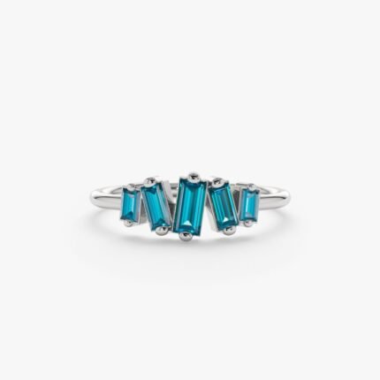 Get this Product in 14K Gold"Elevate your style with our Baguette London Blue Topaz Ring. Handmade in solid gold, featuring a stunning cluster of natural blue topaz gemstones."