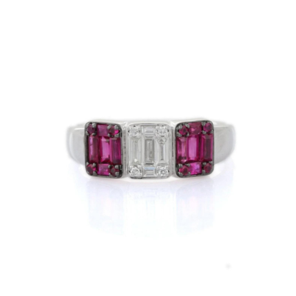 Get this Product in 14K GoldSophisticated 18k solid gold ring featuring baguette-cut rubies and diamonds—crafted for sleek elegance, vibrant color, and timeless sparkle.