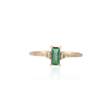 Get this product in 14k goldA sophisticated 18k solid gold ring featuring a baguette-shaped emerald and sparkling diamonds, offering a timeless and elegant design.