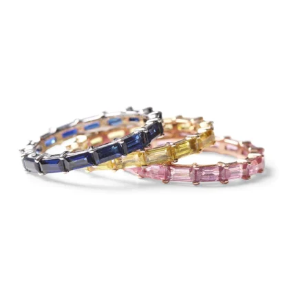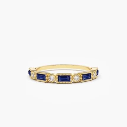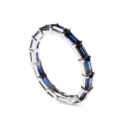 18K Solid Gold Blue Sapphire Baguette Eternity Band