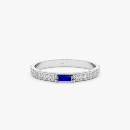 18K Solid Gold Diamond and Baguette Sapphire Ring