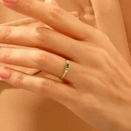 Get this Product in 14K GoldSleek 18k solid gold band ring featuring baguette-cut emeralds—crafted for modern elegance, vibrant color, and timeless sophistication.
