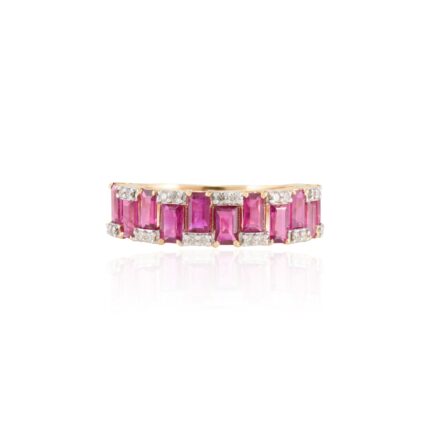 18K Solid Gold Ruby and Natural Diamond Garland Ring