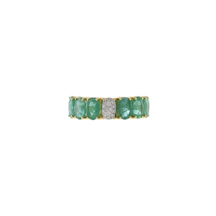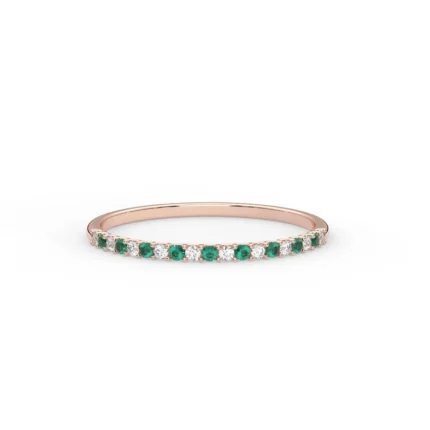 "Elegant 14K Solid Gold 1.3 MM Emerald & Diamond Band – a beautiful band with emeralds and diamonds, perfect for a sophisticated, radiant touch."