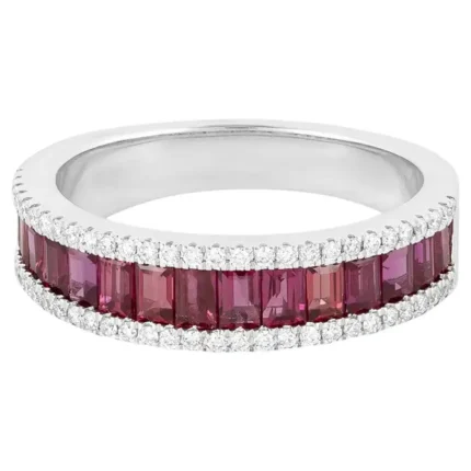 Elegant 18k solid gold ruby eternity band, combining the rich red of rubies in a continuous design for a luxurious and meaningful accessory.