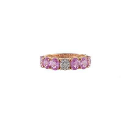 14K Solid Gold Pink Sapphire and Diamond Band