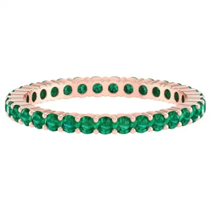 Elegant 14K solid gold infinity band featuring 0.75 carat of vivid emeralds—crafted for lasting beauty, rich green sparkle, and timeless charm.