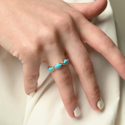 Stunning 18k solid gold turquoise eternity band, featuring a continuous circle of vibrant turquoise stones, offering a bold and elegant design.