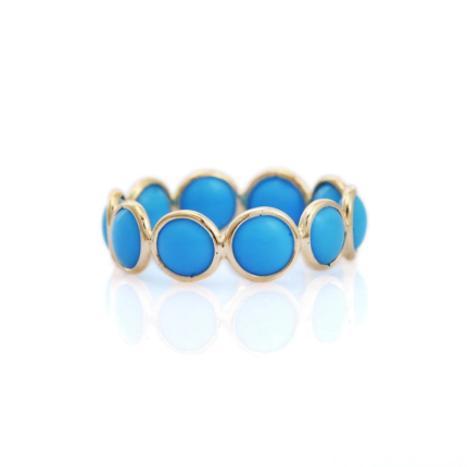 Elegant 18k solid gold turquoise eternity band, featuring a continuous row of vibrant turquoise stones for a timeless and colorful design.