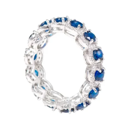 Elegant 14K solid gold eternity band with a 3.39-carat sapphire and diamond cluster, offering a luxurious touch to any collection.