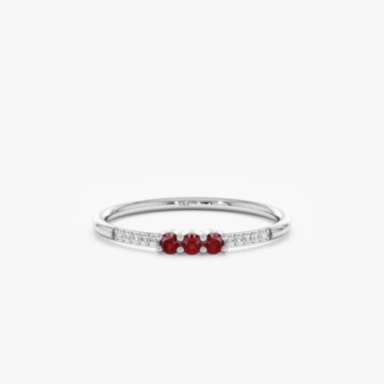 14K gold ruby and diamond ring featuring 0.09 ctw ruby and 0.05 ctw GH/VS-SI diamonds. GIA certified with a 1.3 mm band.