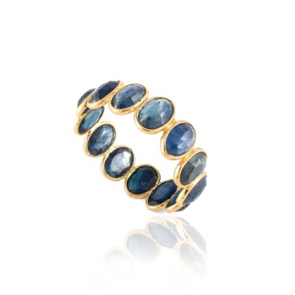 Timeless 14K solid gold eternity band featuring rich blue sapphires—crafted for lasting elegance, deep color, and classic sophistication.