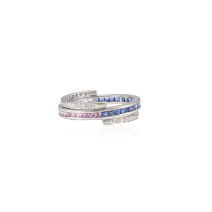 Versatile and dazzling, this 14K solid gold convertible magic ring features multi sapphires and diamonds—perfect for dynamic, colorful elegance.