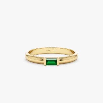 Get this Product in 14KÂ GoldExude elegance with our Baguette Emerald Dome Ring, featuring a stunning natural emerald set in a dome band. Handmade in solid gold, perfect for stacking or gifting.