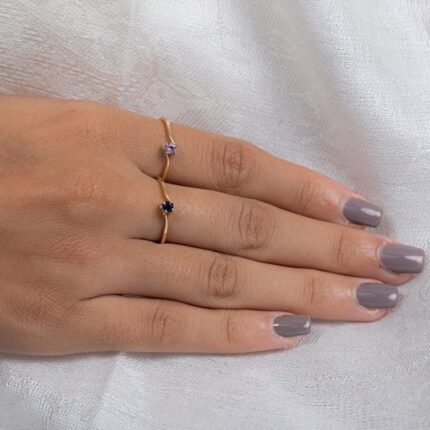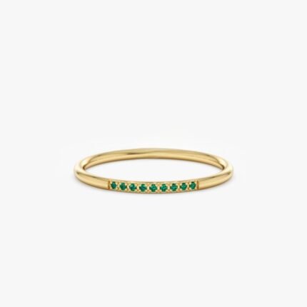 Get this Product in 14KÂ GoldA delicate 18k solid gold thin emerald stacking ring, offering a vibrant pop of green and a timeless design perfect for layering or wearing solo.