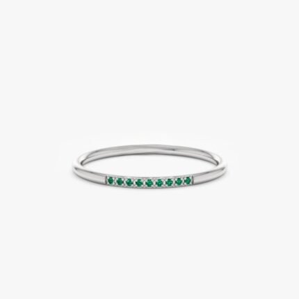 Get this Product in 18K GoldA delicate 14K solid gold band featuring 1.5 mm natural emeralds, offering a sleek and timeless design that adds vibrant color to any collection.
