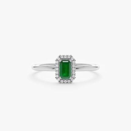 18K Solid Gold Mini Emerald and Diamond Engagement Ring