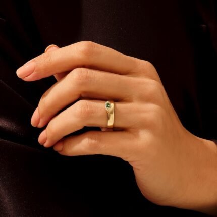 Get this Product in 14KÂ GoldElegant 18k solid gold minimalist wedding ring with an emerald, combining simplicity and vibrant color for a unique and timeless engagement ring.