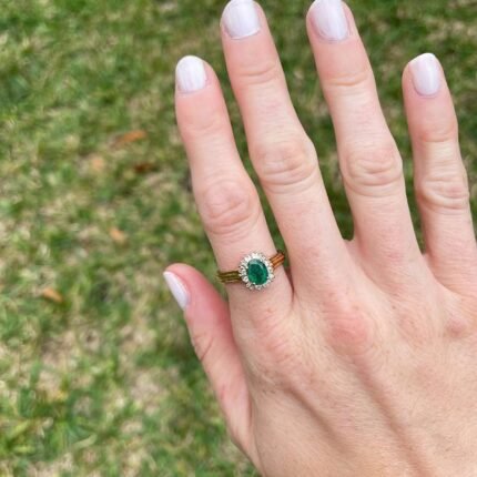 18K Solid Gold Lab Grown Emerald & Diamond Ring