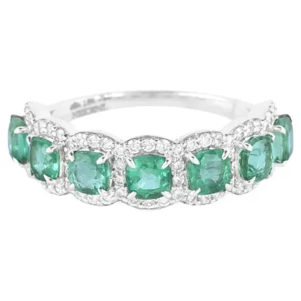 Get this Product in 14K GoldElegant 18k solid gold wedding band featuring marquise-cut emeralds and sparkling diamonds—crafted for timeless beauty and natural brilliance.