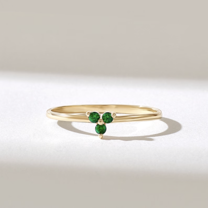 18K Solid Gold Minimalist Emerald Trio Ring